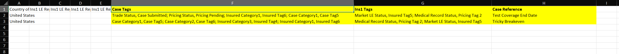 An example of an exported report with case reference, case, and Insured tags will be as shown below: