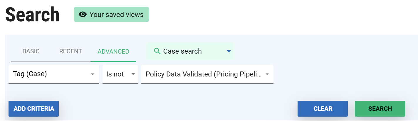 This appears in a saved view used by the pricing team who pick the case up and do the pricing work. If the pricing team were to see something wrong with the data, they could remove the “Ready For Pricing” tag and add another tag e.g. “LE Report Update Required” to push the case back to another user/team.