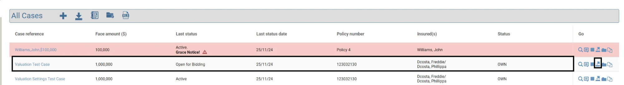 - Select a Case from the list, click the Export Case button.