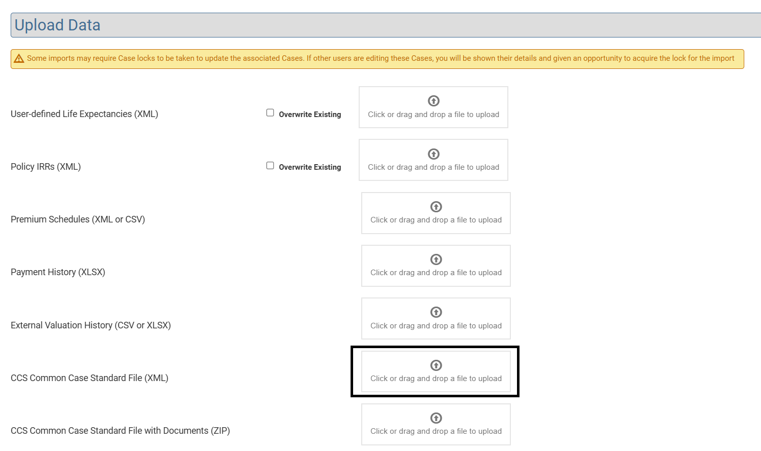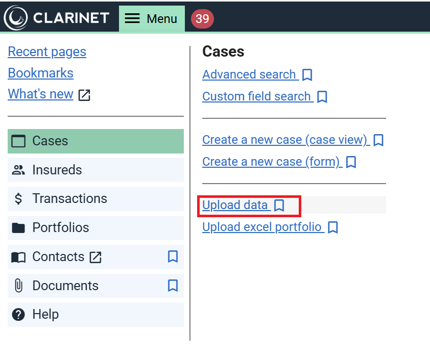 - Import the edited XML File by selecting the Menu Button in the top bar, then Cases, Upload Data