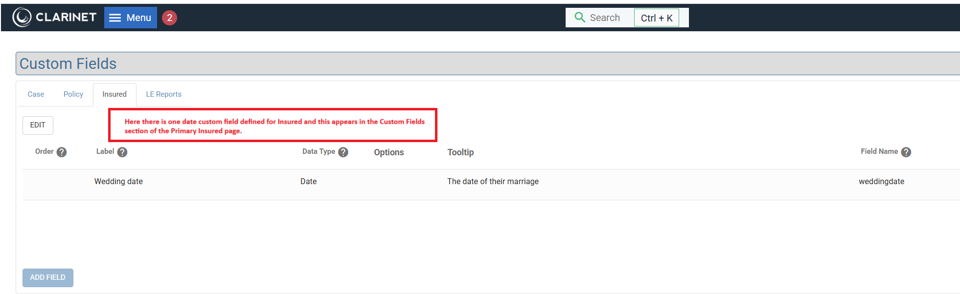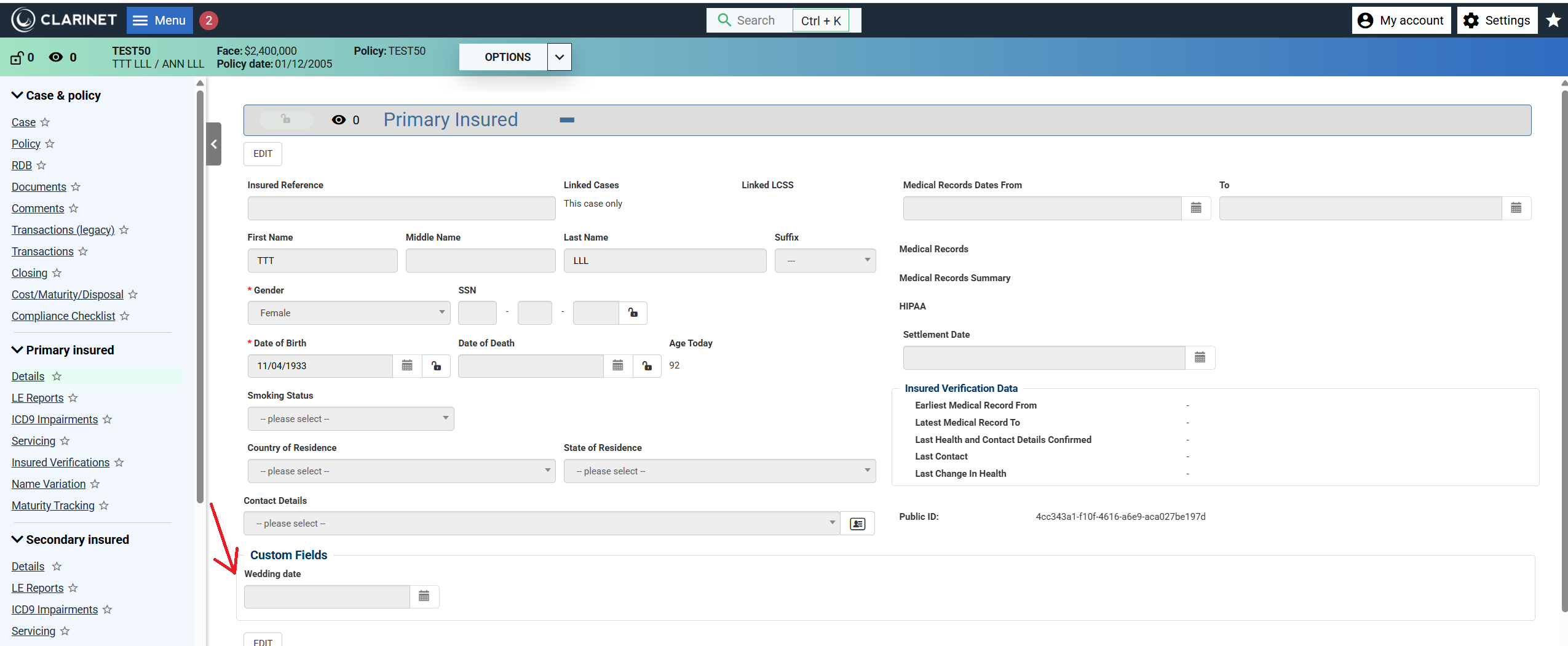 Custom fields on the Insured page