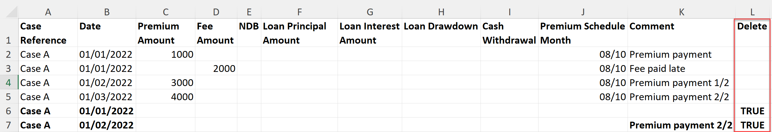 To rectify these errors you can upload a second file (or alternatively you could have included the following rows in the first upload) that contains special delete markers to remove the now incorrect data. These take the form of a new Column named "Delete" and the value "TRUE" for any rows that you wish to delete.