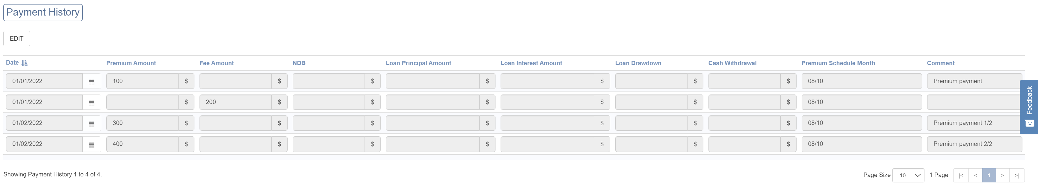 Row 6 New Payment created as no Payment existed for the Date and Comment. This is because the Date of the Payment is different.