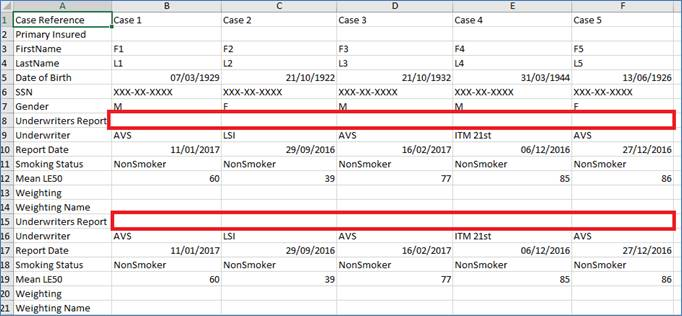 - Delete the contents of any columns to the right of the rows Marked "Underwriters Report"