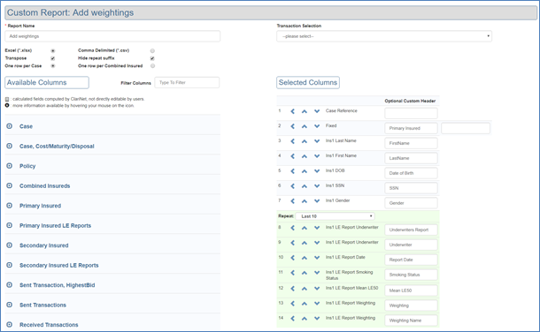 The cell Weighting Name must contain either "Primary" or "A2E". Other than these defaults, it can also be the Custom Case Weighting names.