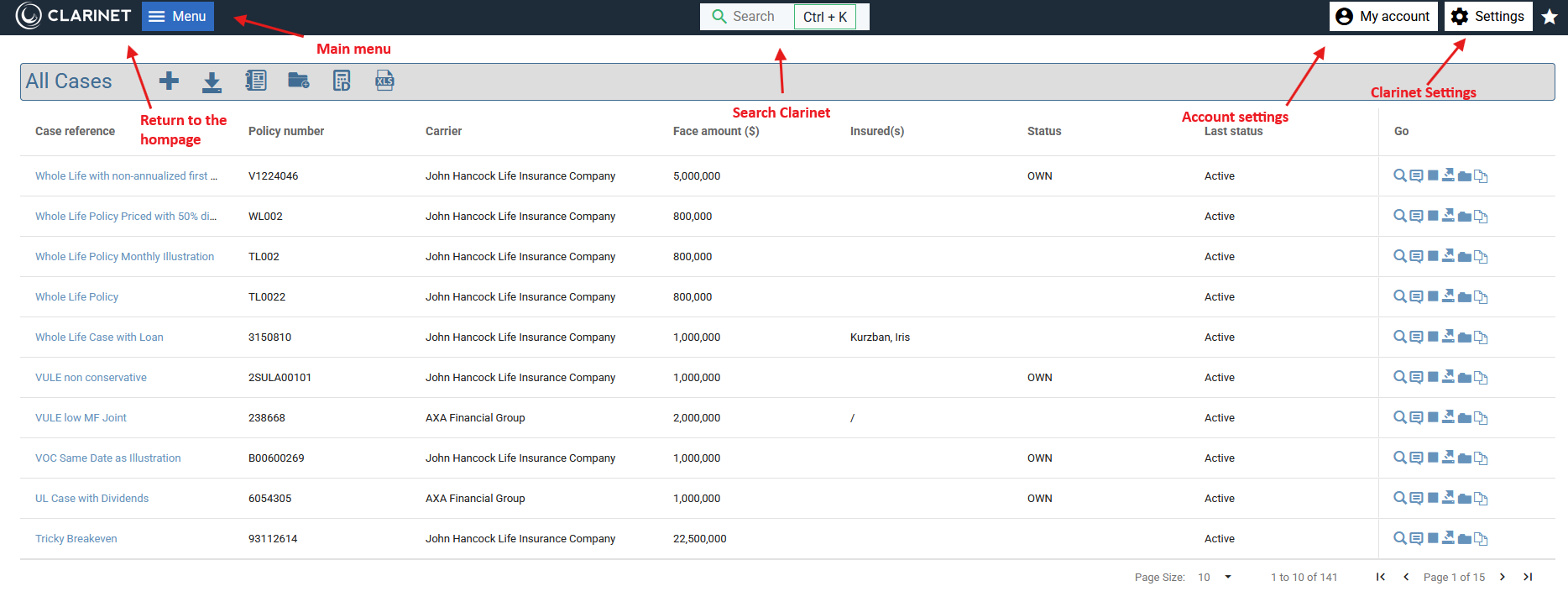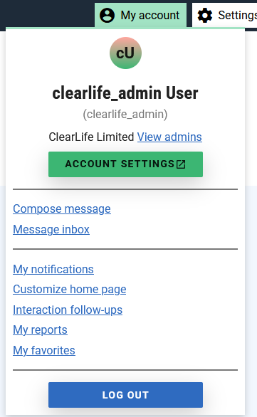 - Help A link to these help pages, how to contact ClearLife for help and what support information to provide.