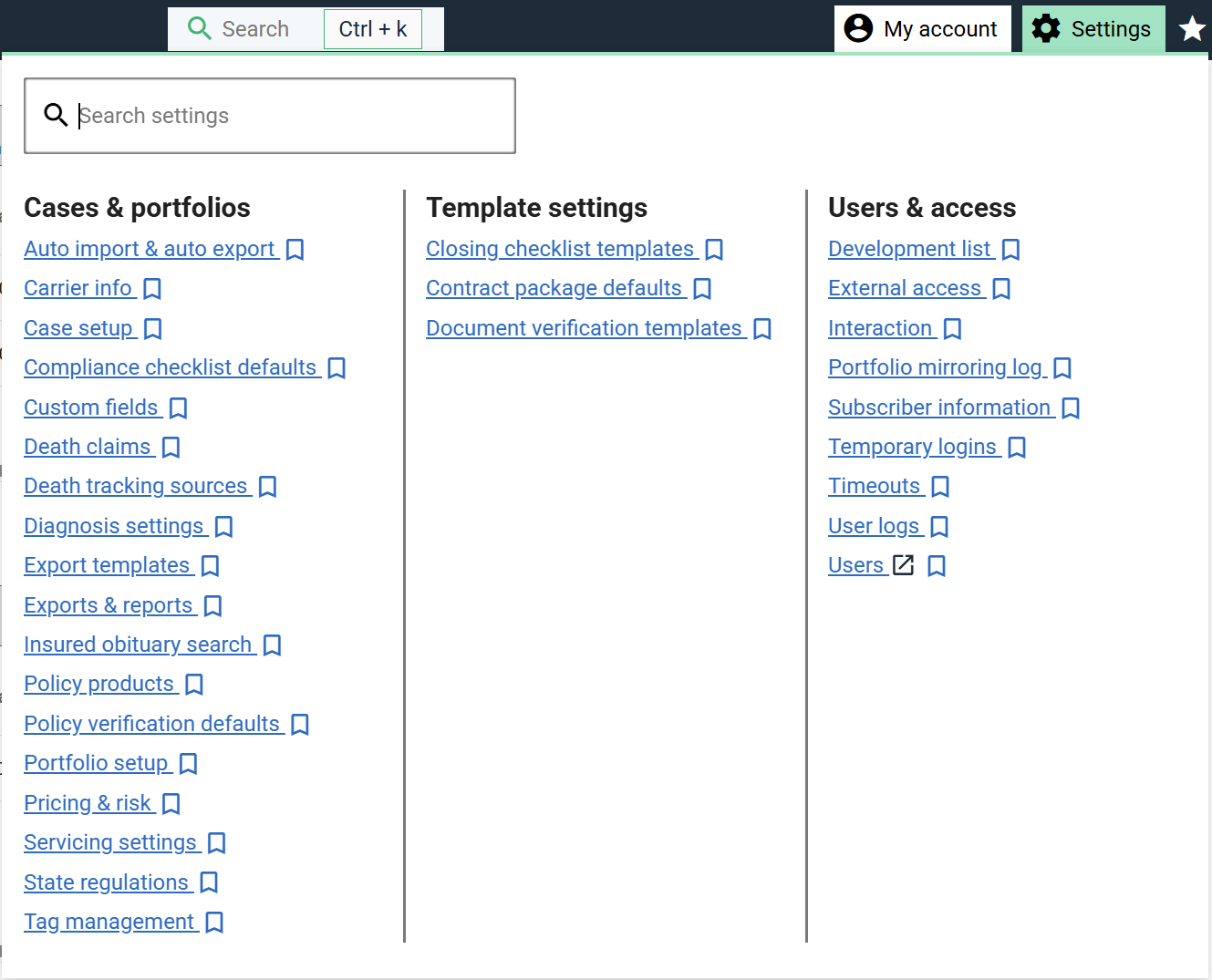 In the middle of the Navigation bar you’ll found your Search which provides functionality for Searching case or insureds information.