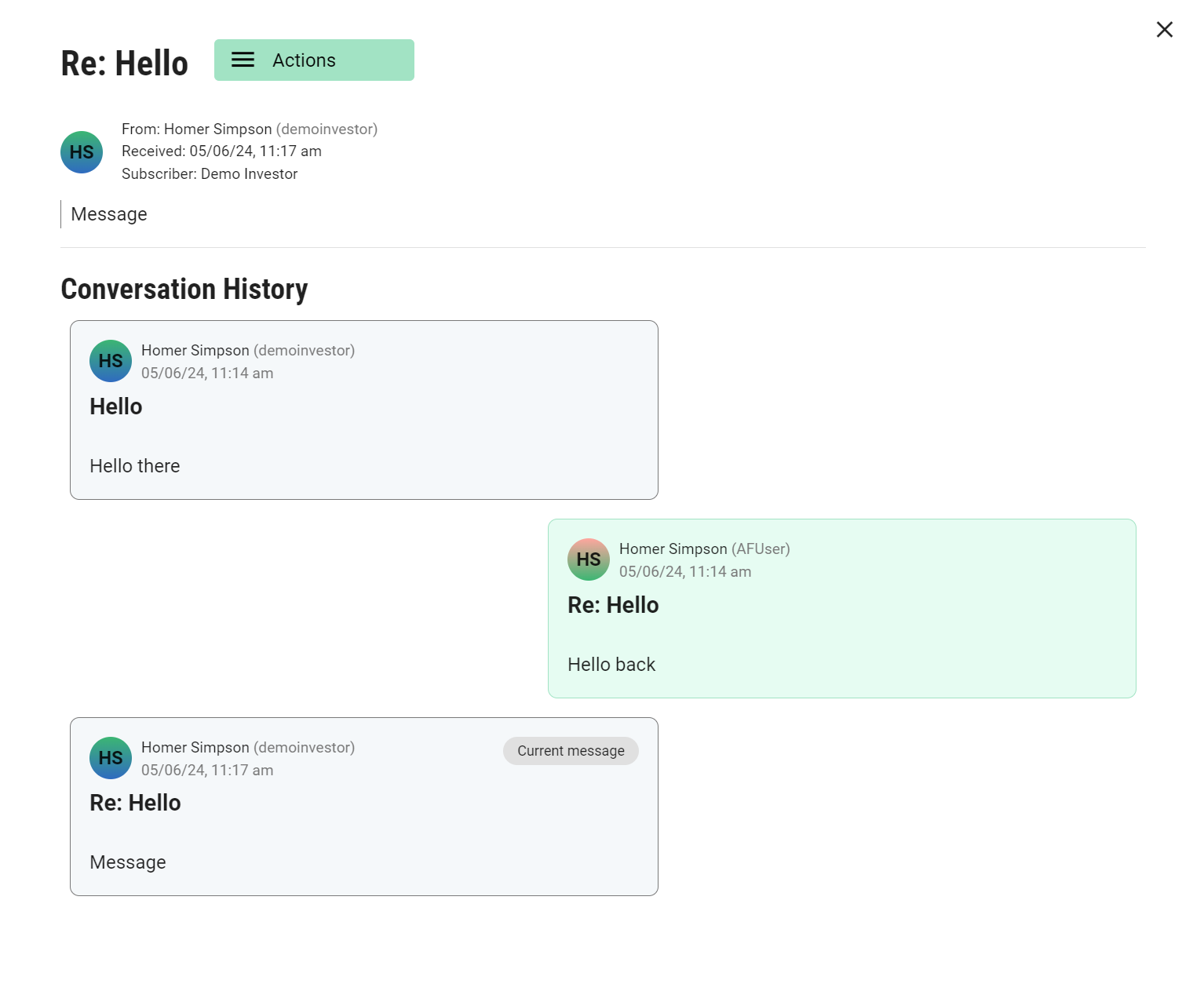 Viewing a message will show all the details of a message and who it was sent from. If there is an active conversation, conversation history will be displayed.