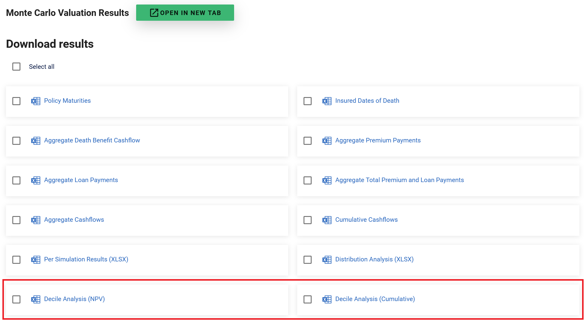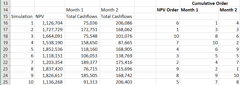 The results of the Decile Analysis can be verified by looking at the other Monte Carlo result downloads and manually sorting simulation runs.
