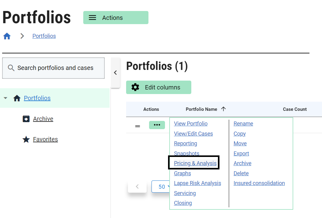 The Portfolio Generator is accessed from the Portfolios page (Pricing & Analysis sub menu):