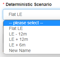 • Deterministic (Value Date): a date of death is calculated from Value Date plus the bump specified in the Deterministic Scenario drop-down. For example, if value date is 19-June-2019 and we specify LE + 12m, the date of death will be 19-June-2020.
