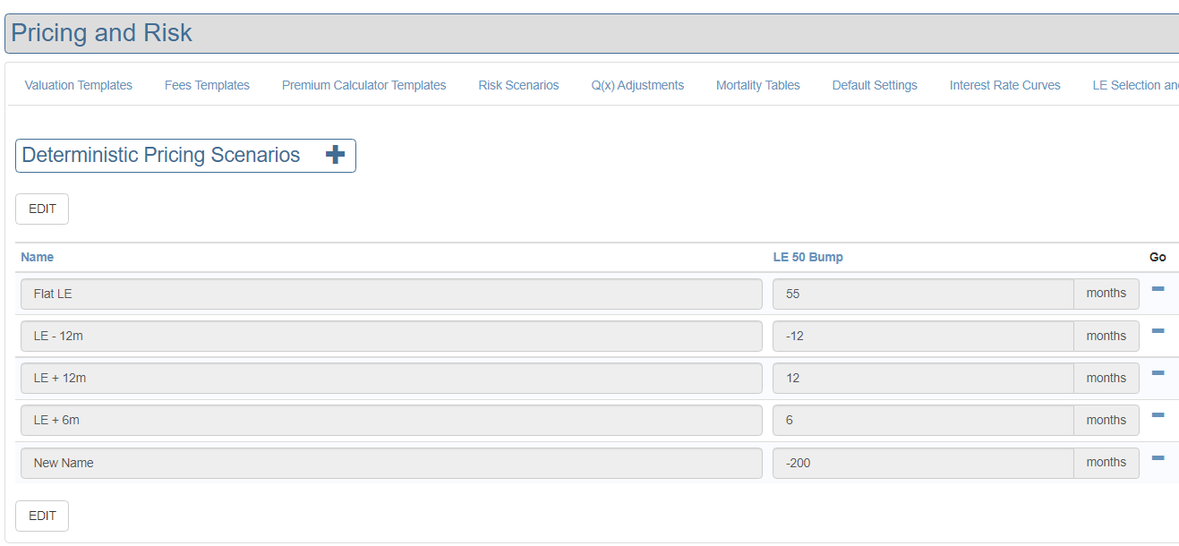 This drop down determines whether the LE50 is used or a specified bump is applied to that LE50. Note that additional bumps can be specified by adding them in Pricing and Risk.