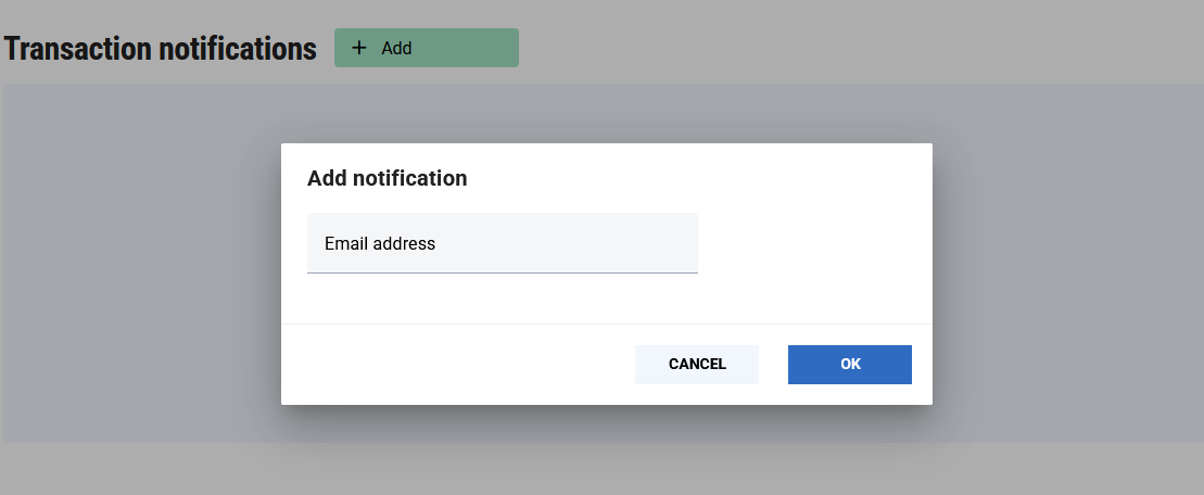 In addition to the notifications created by individual users, it is also possible to configure notifications for all transactions (sent and received) on the Settings, Interaction page. This page is accessible to administrators only.
